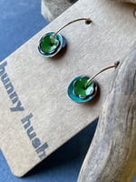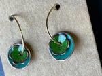 Hung from gold plated stainless steel loop ear wire.