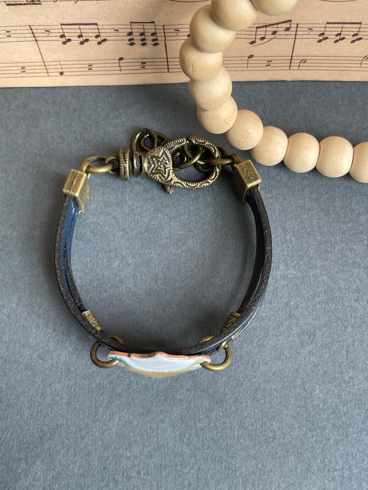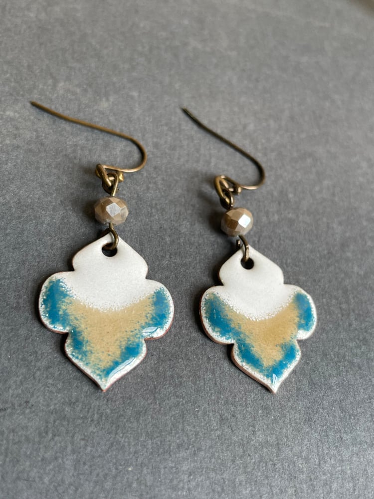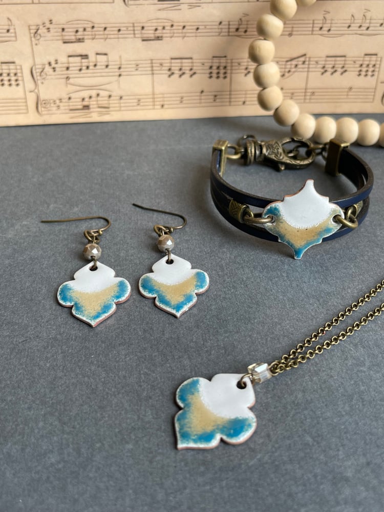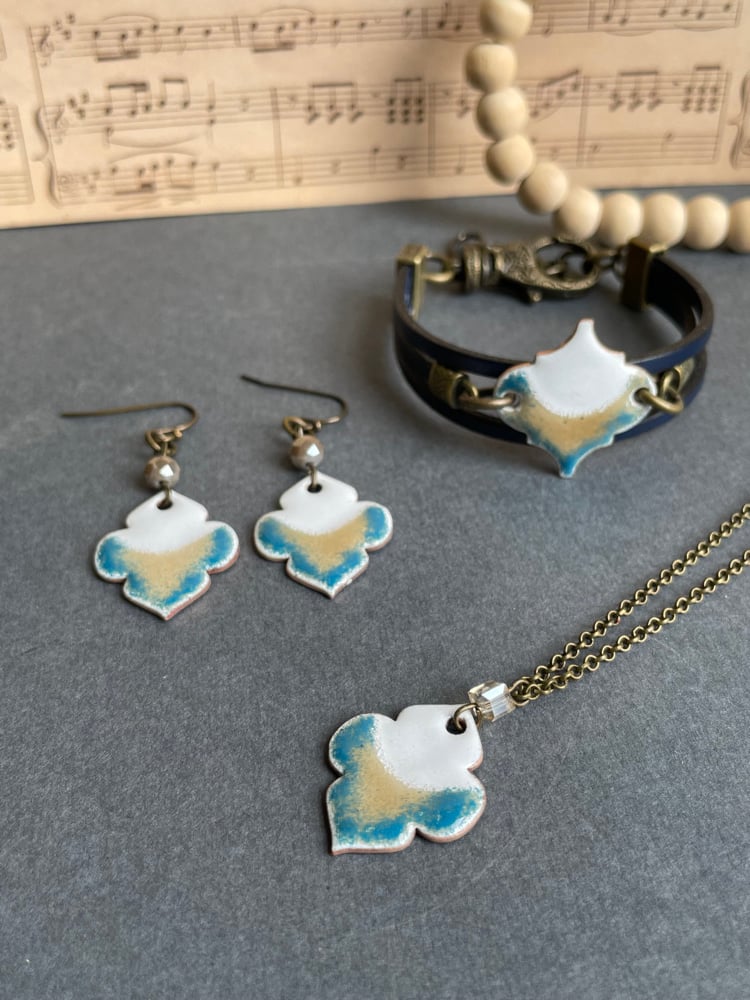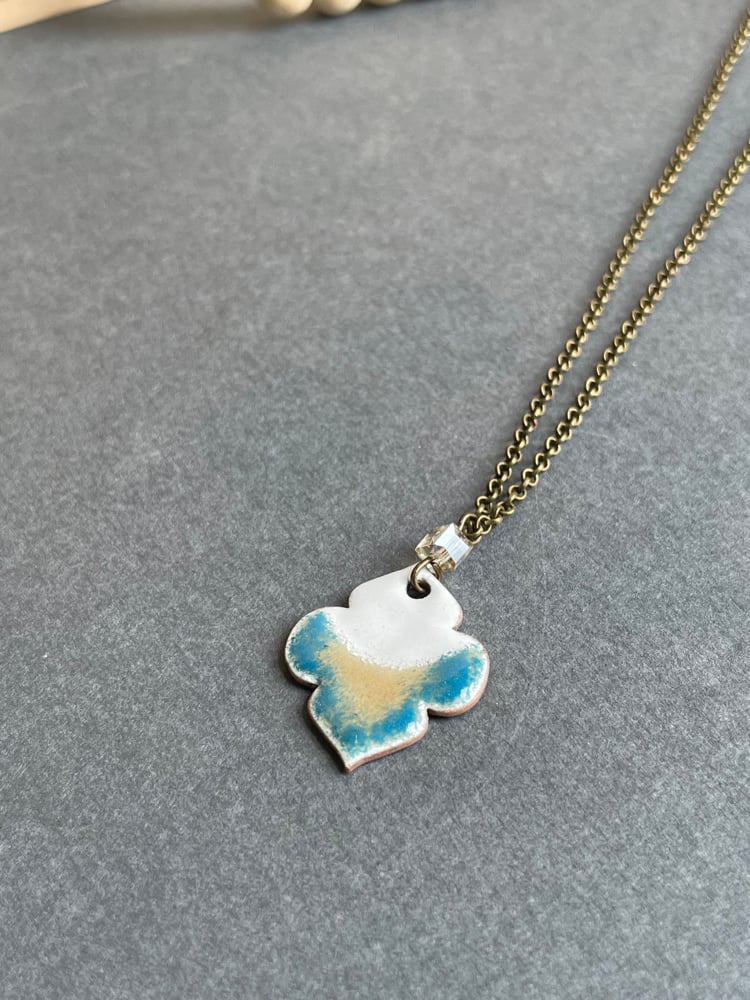 Vitreous enamel torch fired to copper.
