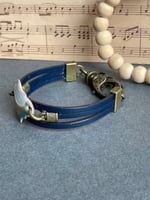 Bracelet has a triple threat of dark navy European leathers. Lobster clasp closure. Fits sizes 6.5”-8” adjustable