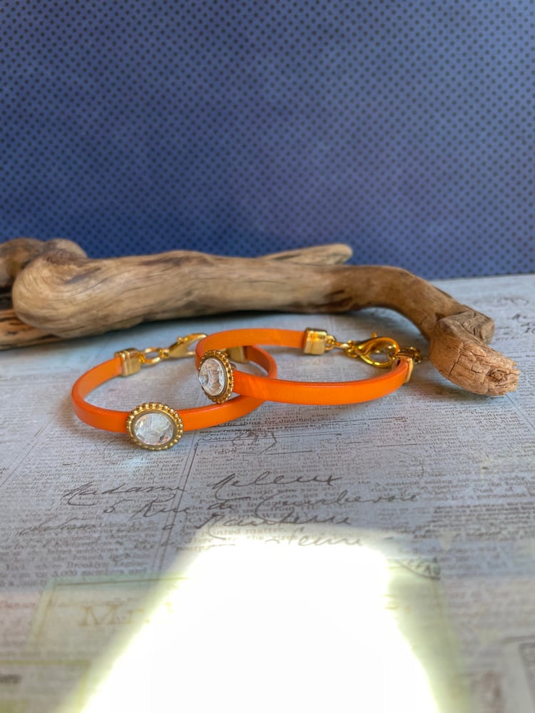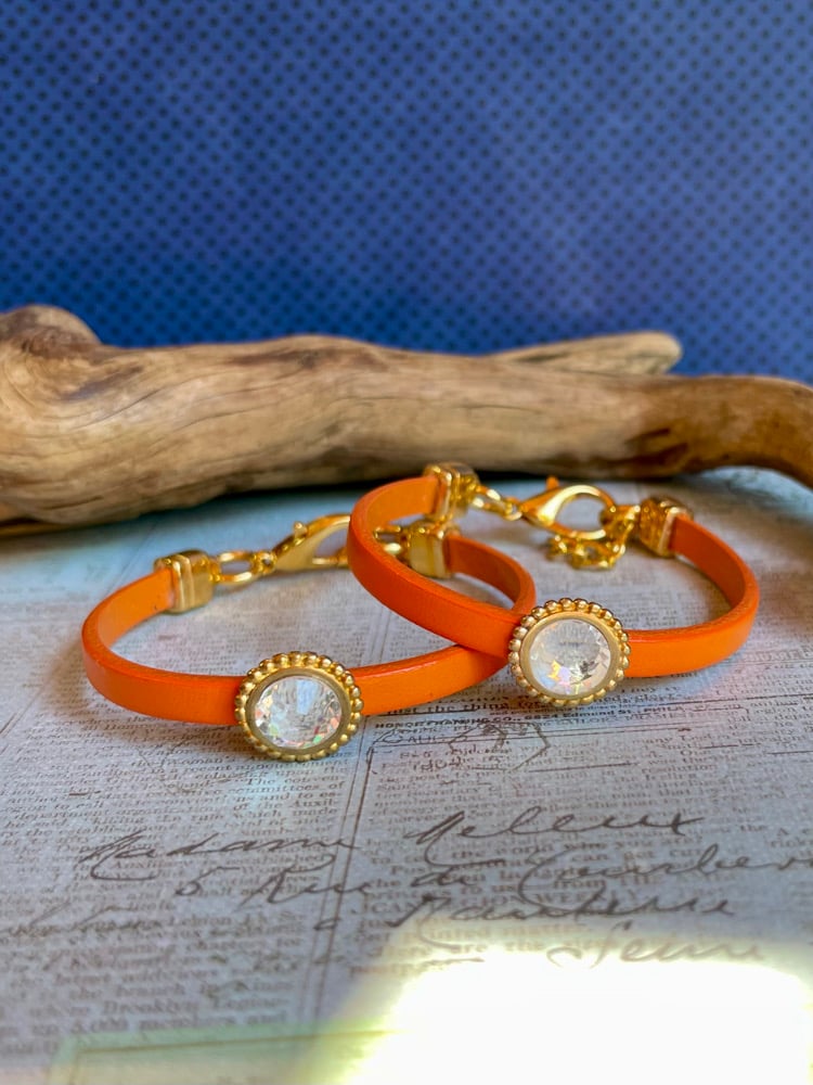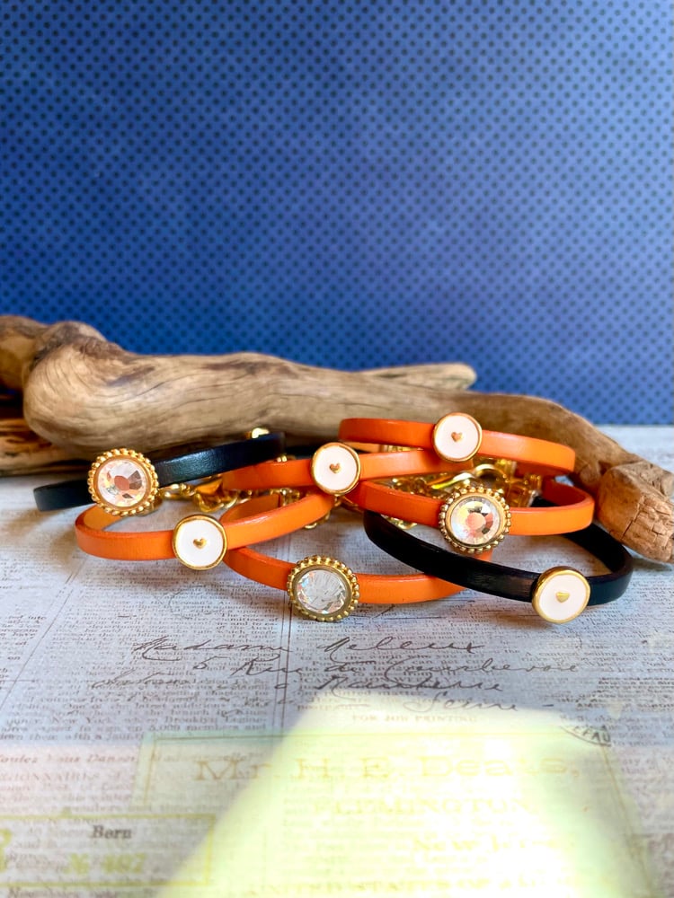 Leather is European 5mm, vegetable dyed.