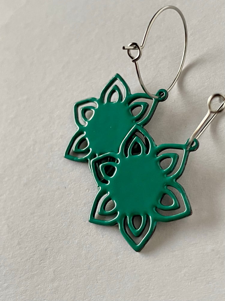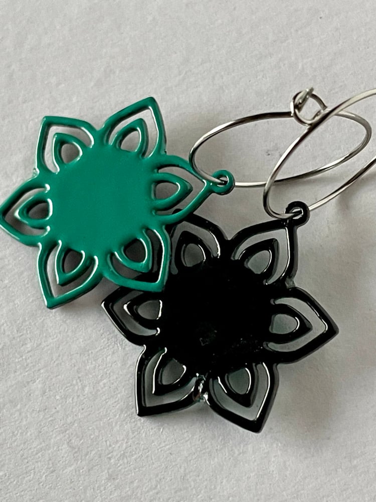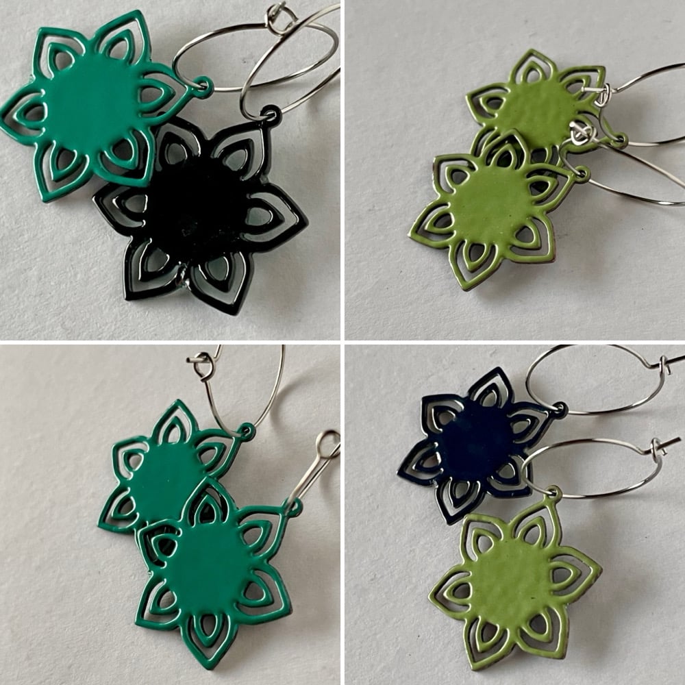 Hung from stainless steel ear wire for easy switching, since these are reversible! 2 pairs for 1-