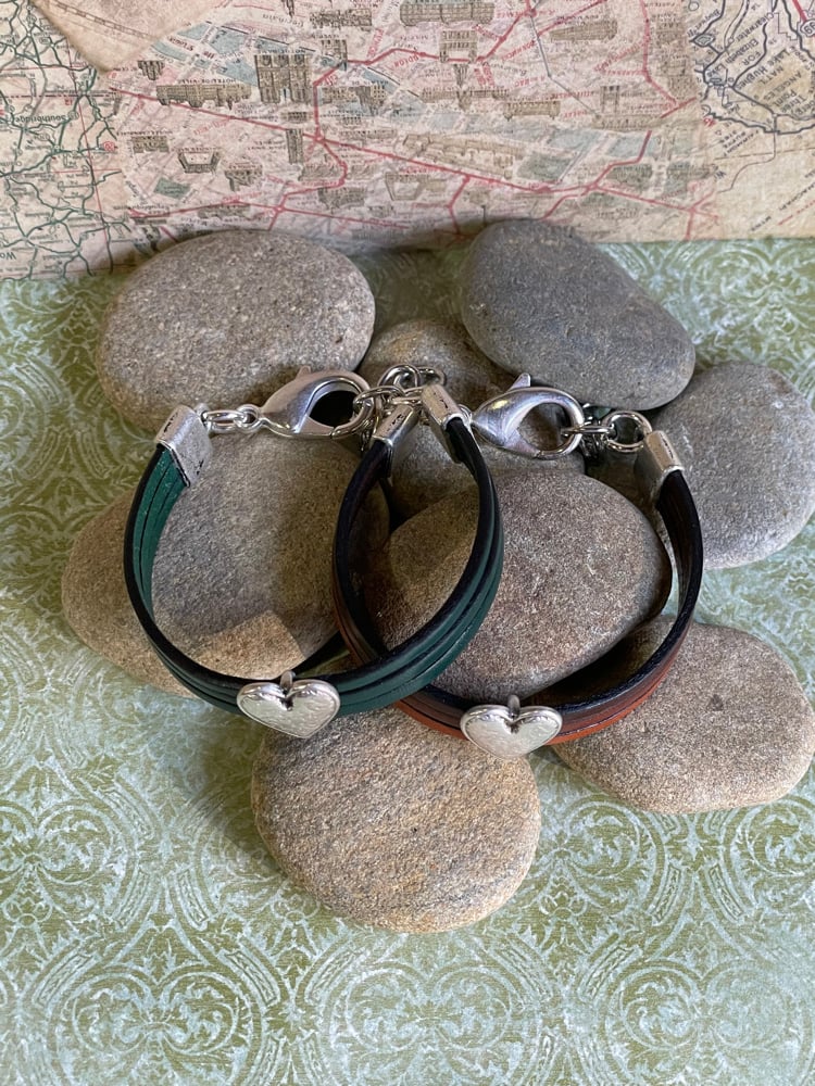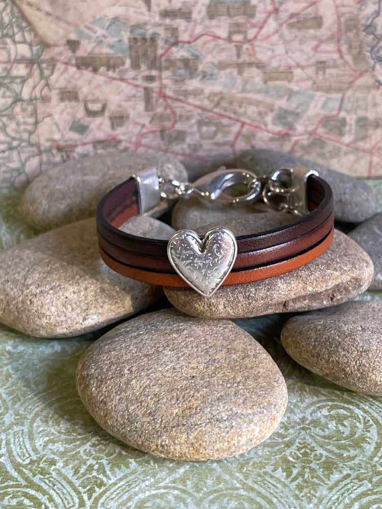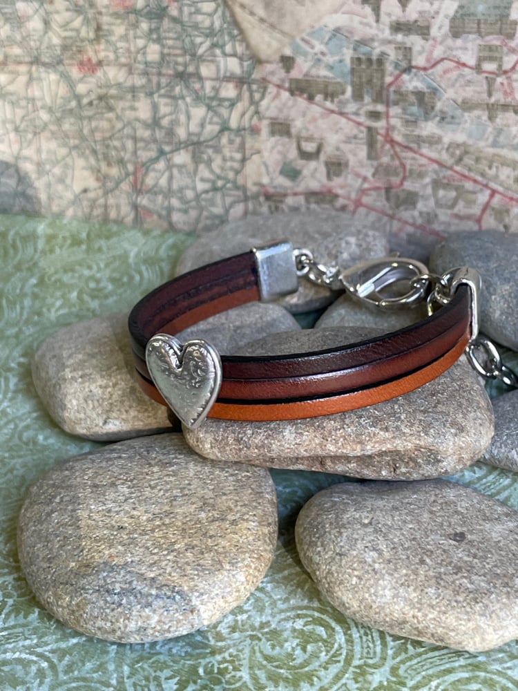 1- Brown Heart / triple strands of coffe brown, chocolate brown and saddle brown leathers.