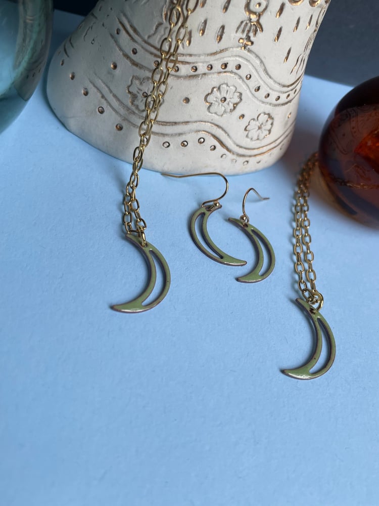 Matching Moon earrings with gold ear wire - nickel and lead Free