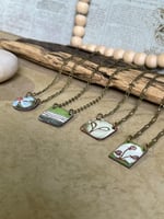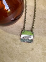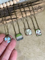 Hung from a 16”-18” adjustable brass chain. Chain is nickel and lead free.