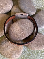 1- Material: Top quality cowhide leather. Vegetable-tanned and dyed. Made in the European Union. Double layered leather with an exposed ball chain running down the center.