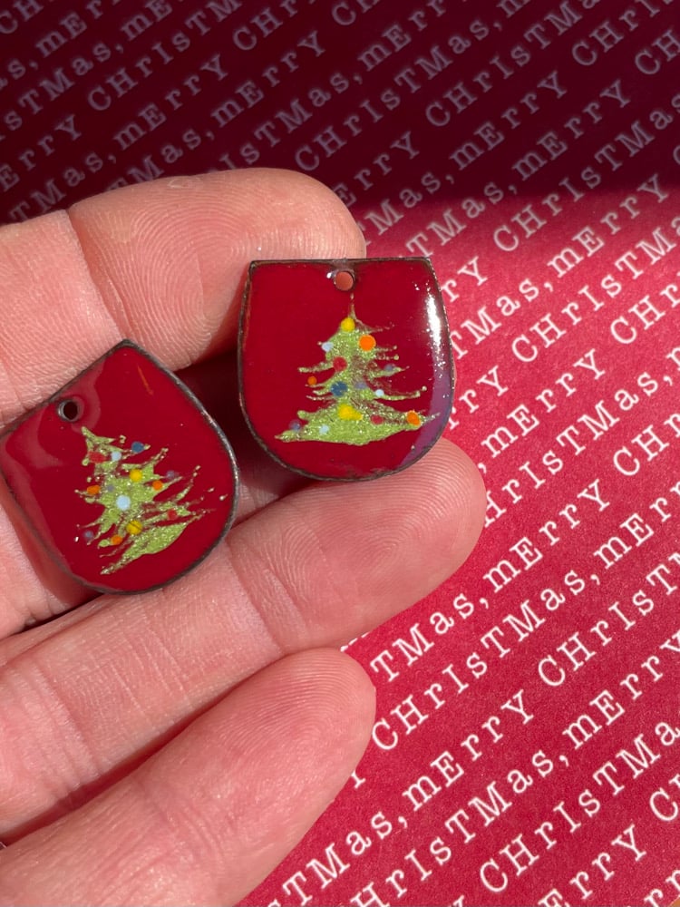 Layers of powdered glass sifted to copper, then torch fired over and over to achieve look.