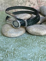 All leathers are European made. Extremely rich in color. (Not suggested for getting wet in showers, baths, pools or ocean)